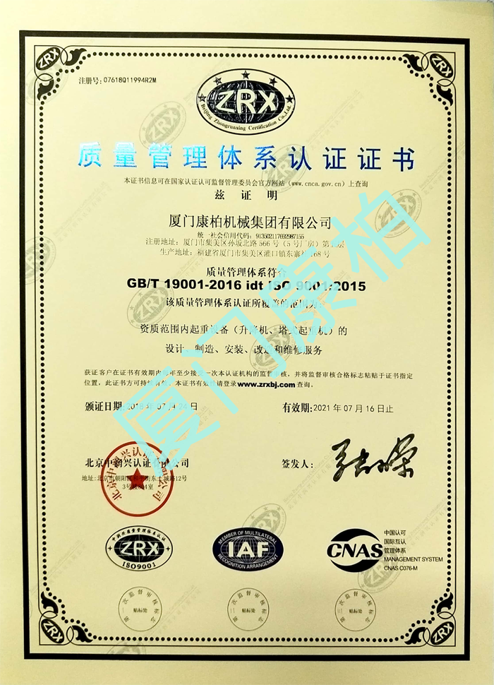 质量管理体系认证证书(中文)