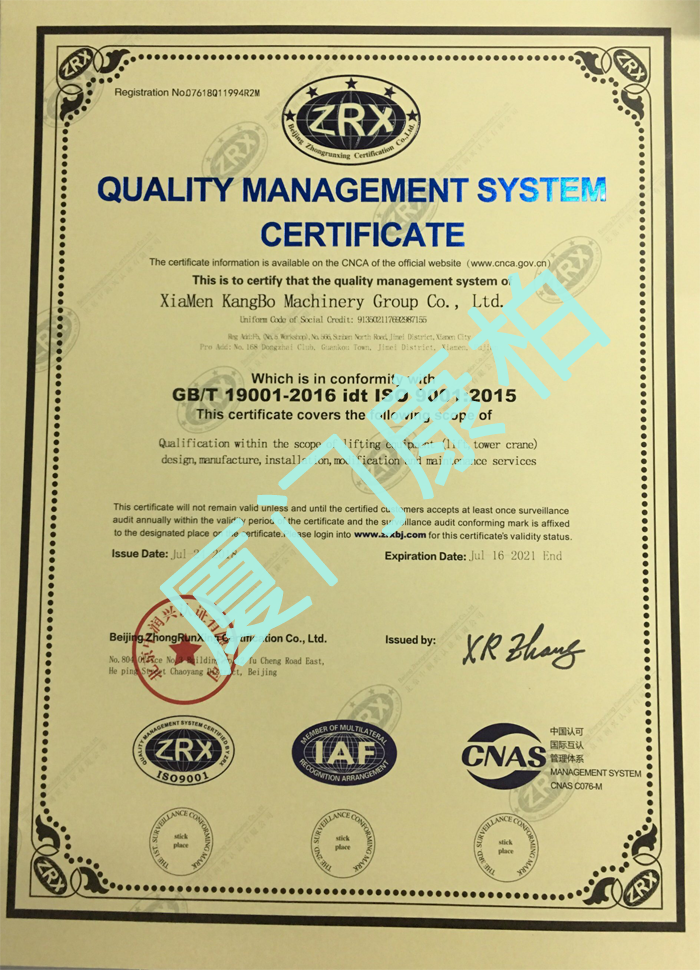 质量管理体系认证证书(英文)